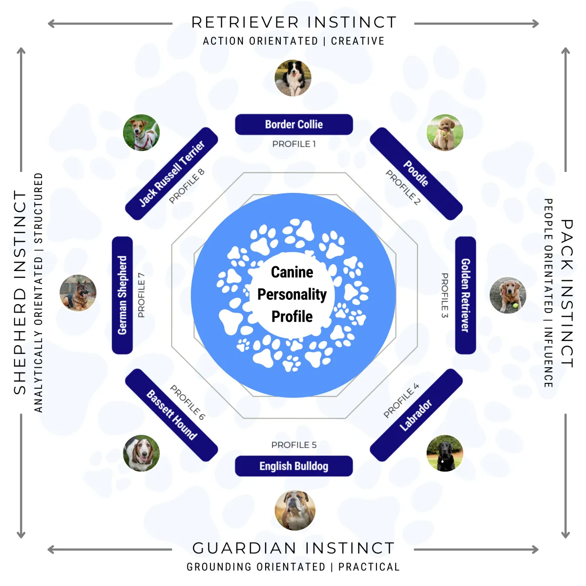 Each profile, from the innovative Border Collie to the charismatic Poodle or loyal Labrador, reveals unique strengths, natural instincts, and personal challenges that shape your approach to work, relationships, and life. By knowing your profile, you gain the tools to leverage your natural talents and navigate challenges more effectively, empowering you to reach your full potential.